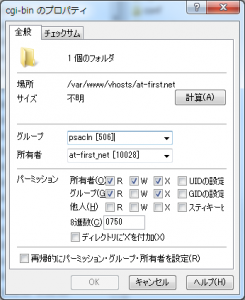 pleskの場合、cgi-binのフォルダは[psaserv]に、それ以下のフォルダとファイルには、[psacln]のグループ設定を行うといいみたいですが、これが何かでおかしくなることがあるみたいです。